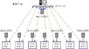 2.考虑到各测量点无标识的ID号,故无法直接通过一条逻辑总线方式将7个测量点直接相连!解决的办法是各测量点分别占用不同的逻辑通道(Omate2000能同时提供8个逻辑通道),通过多串口卡与监控中心控制主机连接,也就是说在逻辑上各测量点与控制主机是点对点连接。这样就保证了各测量点位置信息的实时上传和控制命令的下传。
